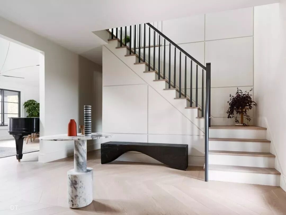 本案位于纽约,整个别墅告别了传统美式乡村别墅设计的古典怀旧,而是采用了现代简洁的设计,整个空间线条流畅明快,光线明亮通透,材质丰富,家具搭配层次分明。