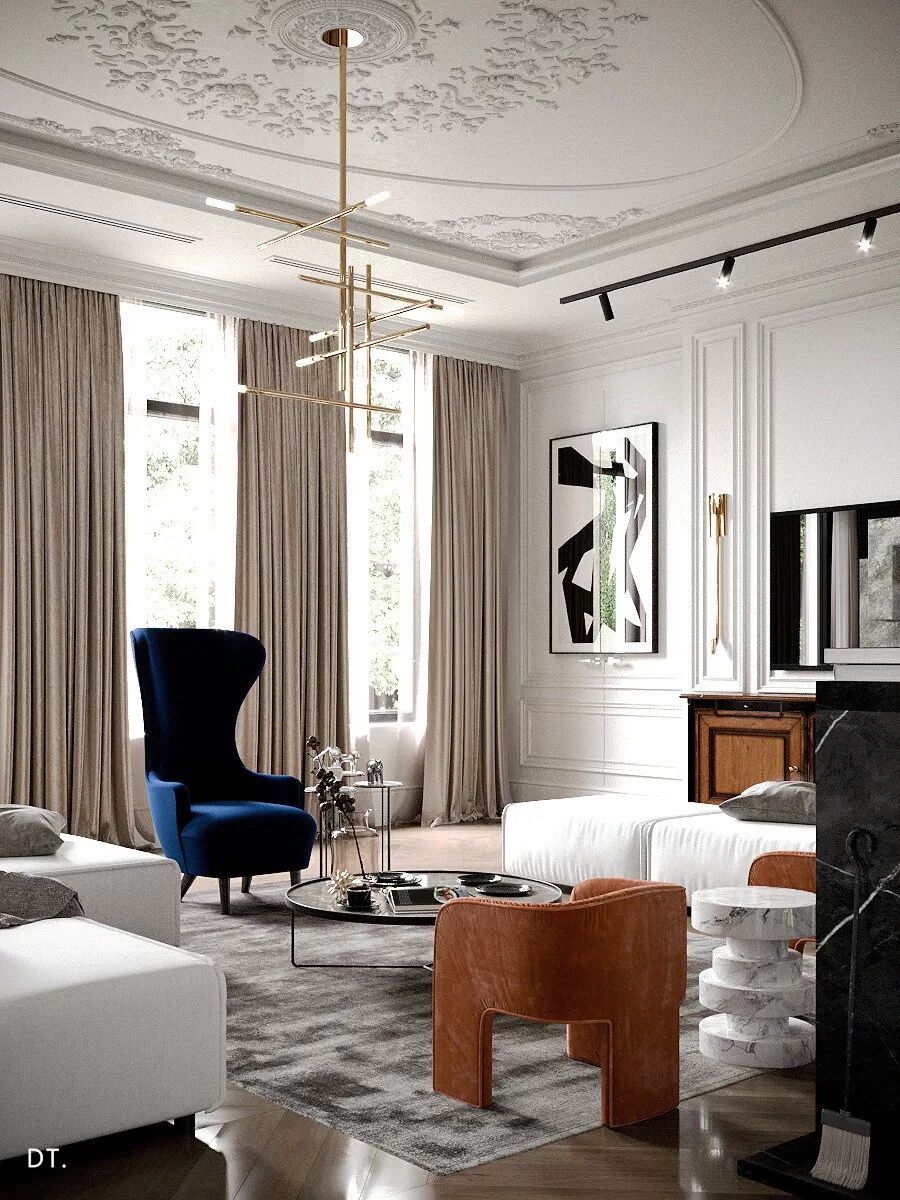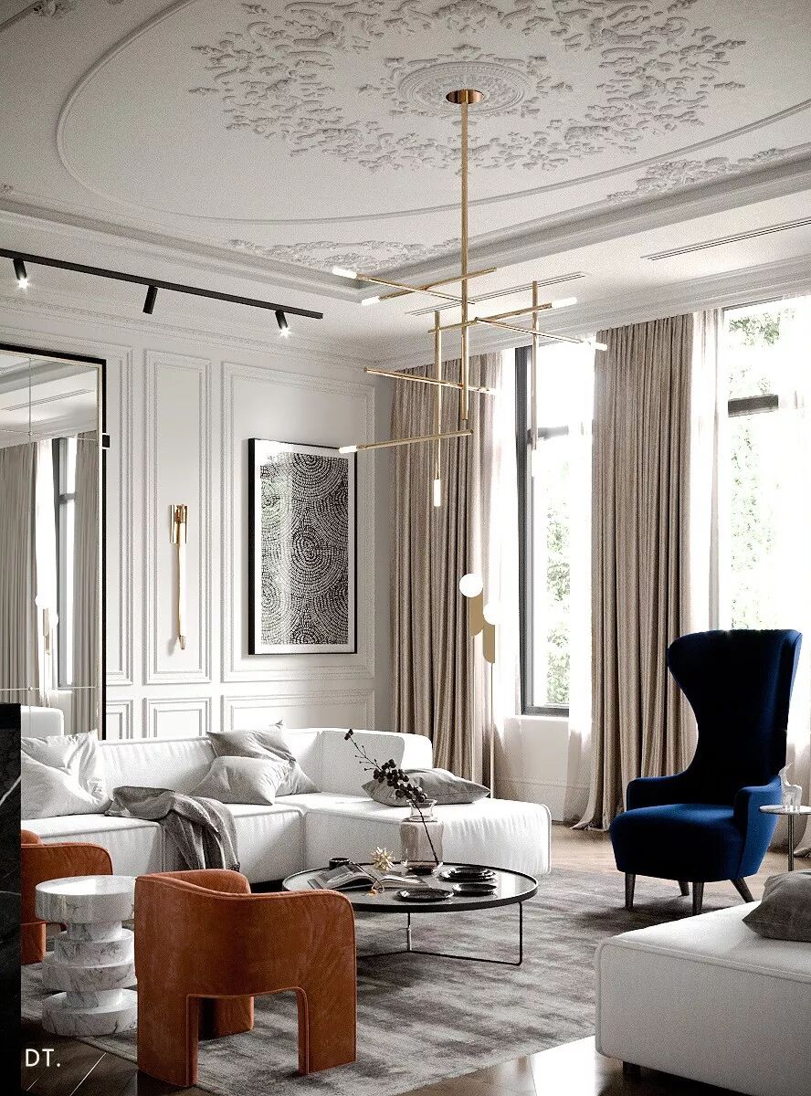 俄罗斯设计师Marina Vanteeva,2019年5月份完成的一个别墅项目,就风格而言,算是现代简欧。